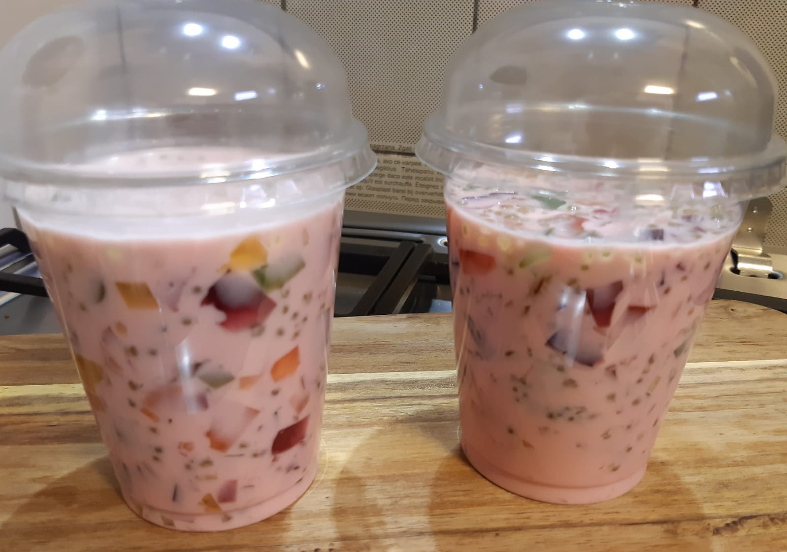 Een lekker toetje na het eten, deze week hebben we ook een lekker dessert wat Gedronken en gegeten dient te worden. Sago drank is een zoete drank van onder andere kokosmelk, sagopearls en verschillende smaken jelly (Gelatine pudding)