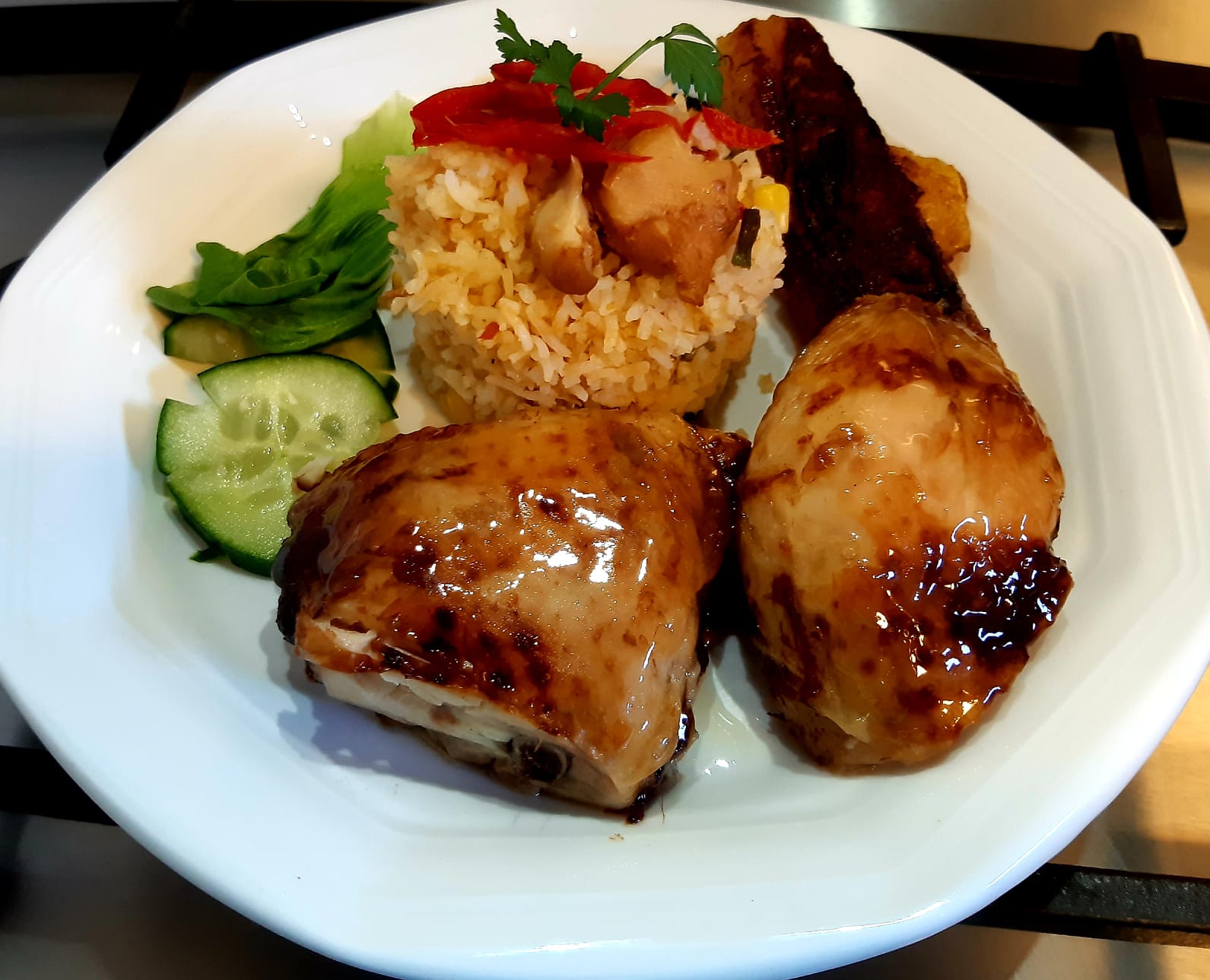 Vandaag hebben we een lekker Kip gerecht. Ketjap kip is gemaakt van Kipdijenvlees met abon sapi. Abon sapi (Meat woll) vindt zijn oorsprong in Indonesië en kan als een side dish gegeten worden. Bij ons is het onderdeel van de maaltijd gecombineerd met overheerlijke kousenband, rijst en aardappel sambal.