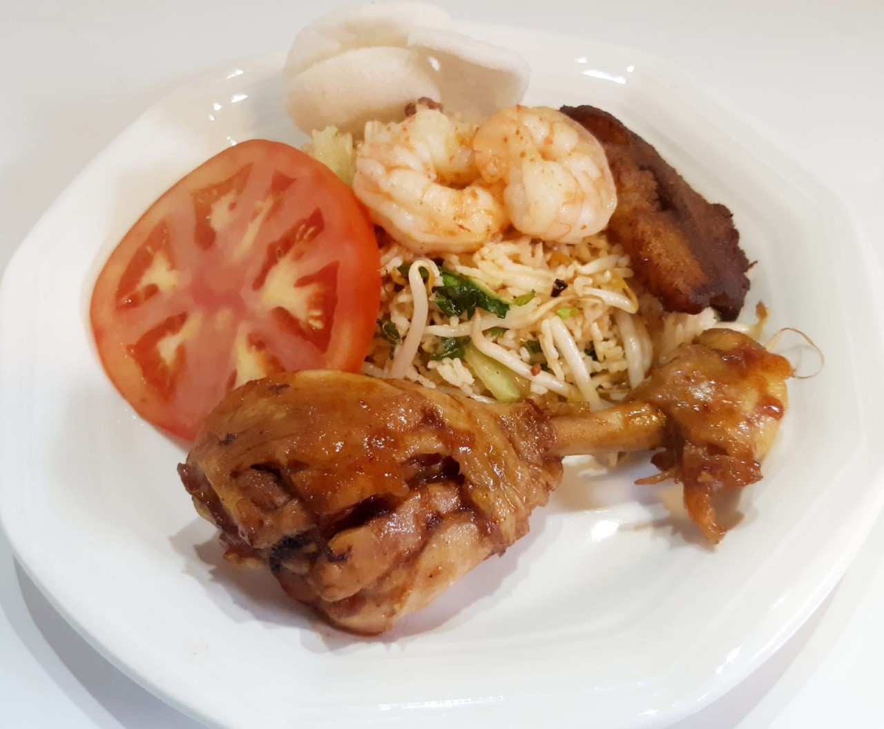 Gebakken rijst met garnalen en drumstick
