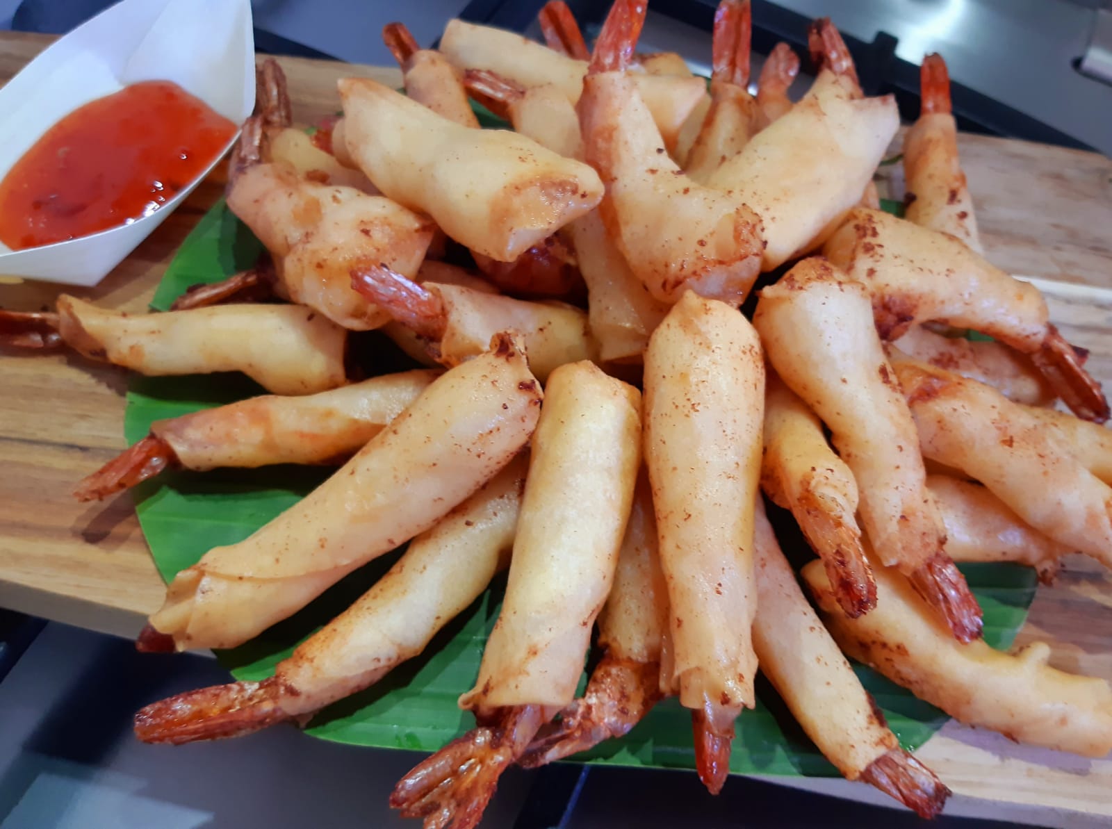 Lekker hangen op de bank, Netflix aan, en dan een gezonde snack. Heerlijke sappige garnalenrolletjes.