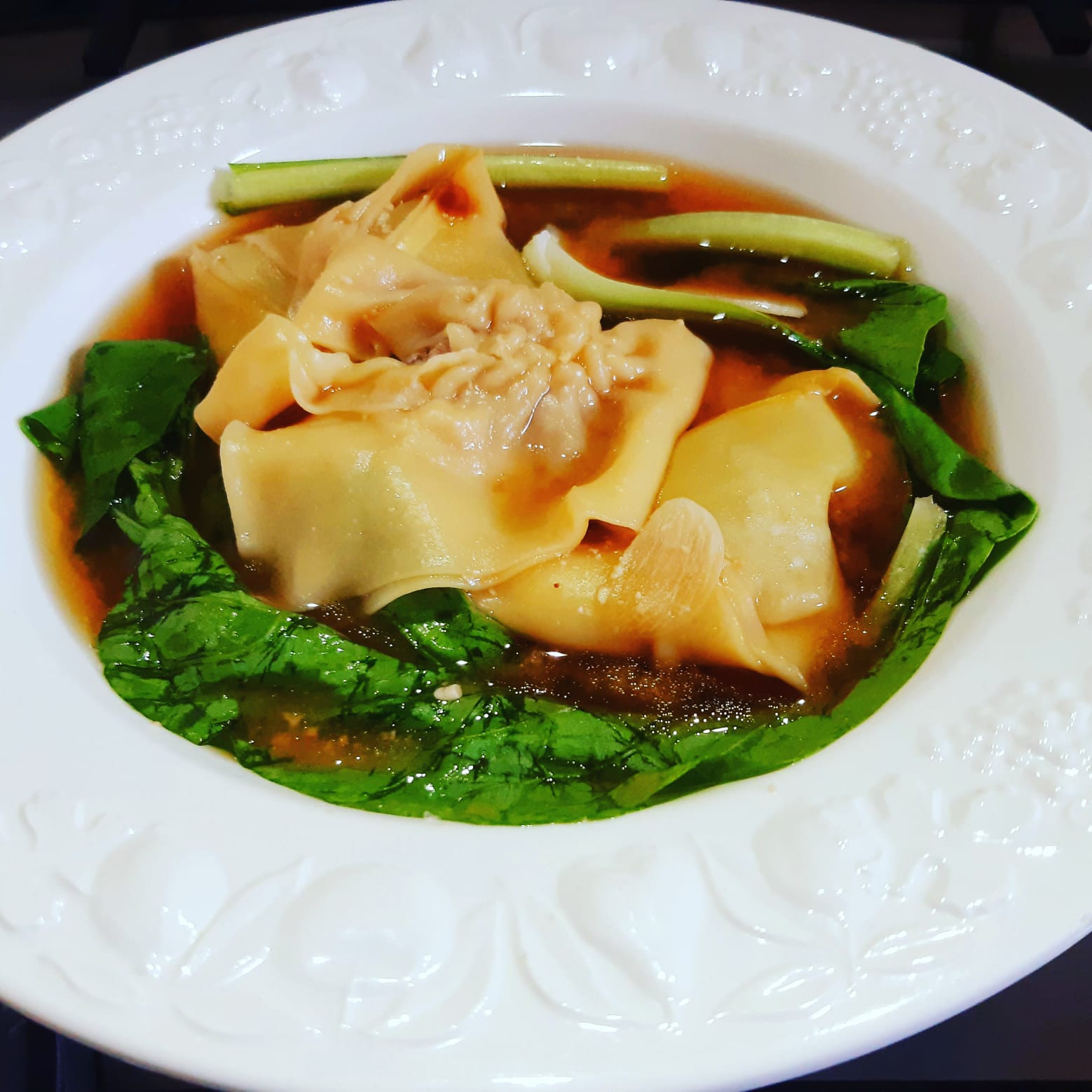 In plaats van de soep op woensdag doen wij het deze week op donderdag. het is dan ook een soep, en ook meteen een maaltijd.. Op basis van een kruidige soep, door de miso pasta (Het eerste deel van de naam), met groenten en natuurlijk de Wonton (om de naam compleet te maken). De wonton zijn gemaakt met gemengd gehakt.