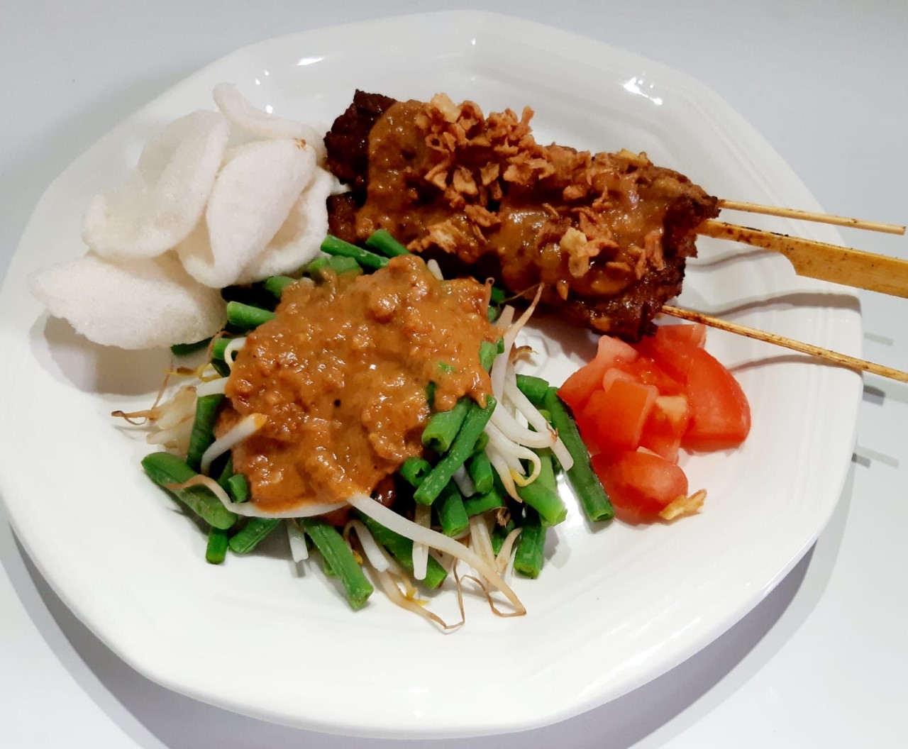 Rijst met saté en pindasaus