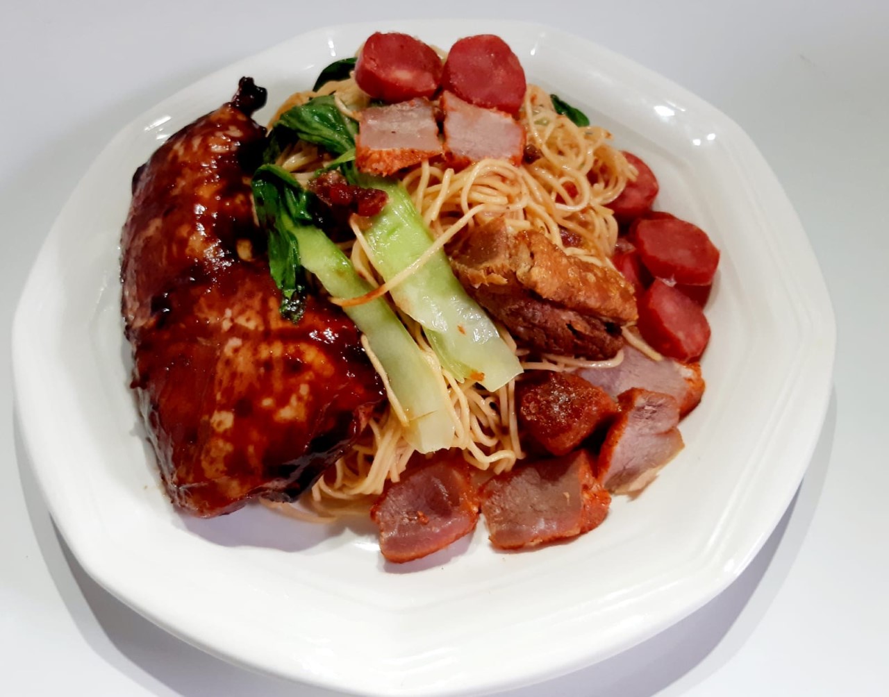 Eventueel kan het varkensvlees vervangen worden door kip (3 kipstukjes en Fatjong van kip).
